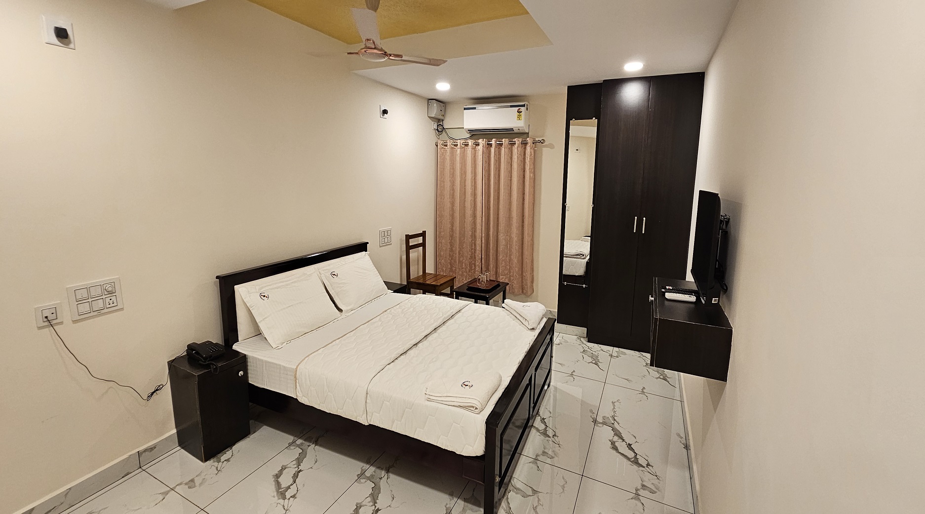 Saadhana Comforts lodge is situated at kanakadasa road, Near Shri Krishna Temple, Udupi. Hotel includes AC Room, AC Deluxe Room, AC Luxury Room, AC Family Tripple Bed Room. Each room is provided with 24 hour hot water, drinking hot and cold water. Services includes generator, elevator. Staff will be availbale at reception for any type of guidance.